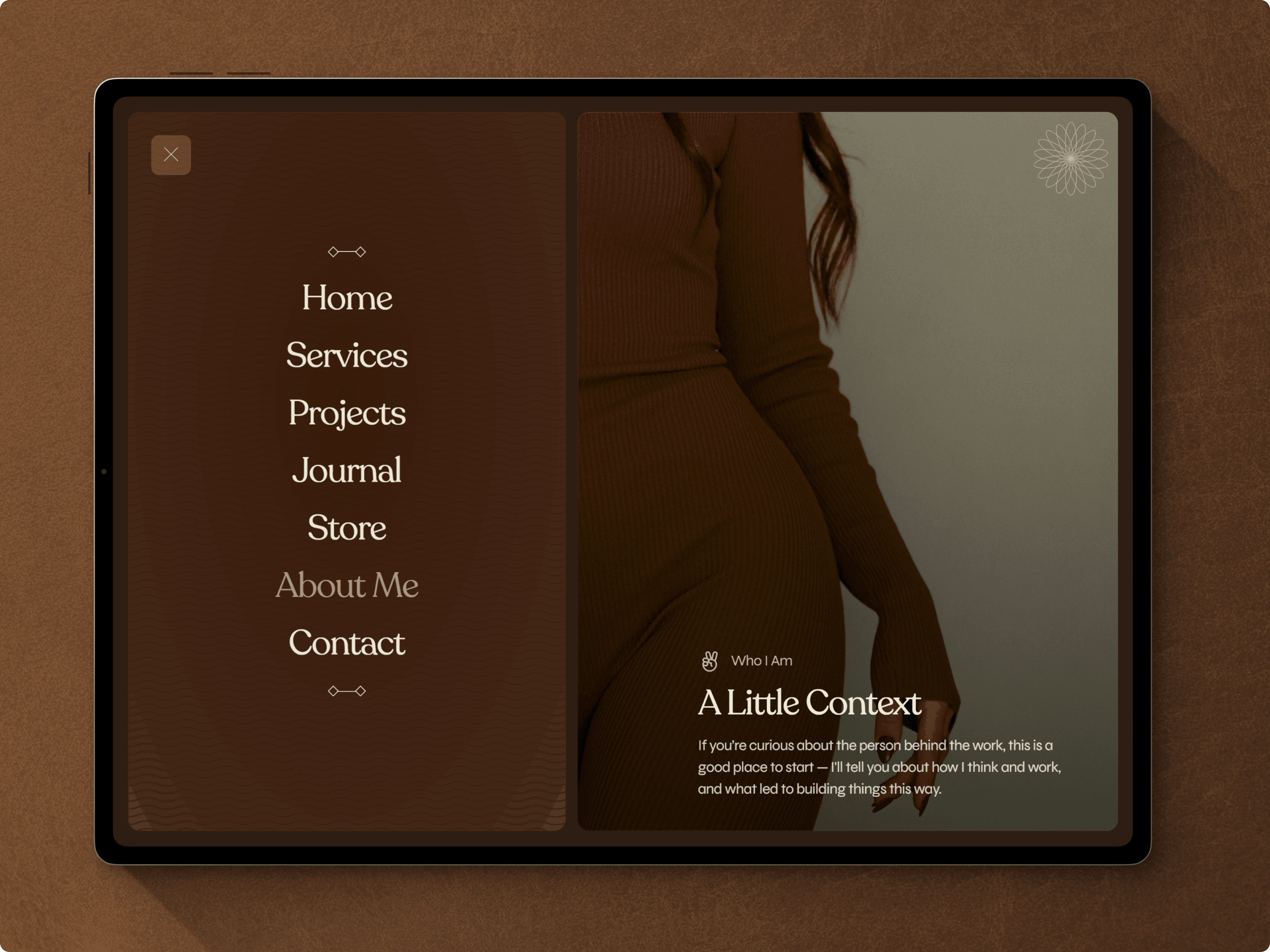 Overlays & Modals – Highlight key pieces or provide additional context through pop-up image galleries, project details, or video embeds.